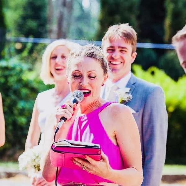 Marney basically wrote, stage managed, directed, produced and performed our ceremony, all with absolute professionalism. She invited our speakers in smoothly and she helped us to prepare and practice our vows, and even our kiss (!) so that we were comfortable on the day. As she is a performer, she felt totally comfortable and this made our guests feel relaxed and thoroughly enjoy the ceremony. The feedback on Marney, from our guests has been fantastic and I highly recommend her to other couples.”